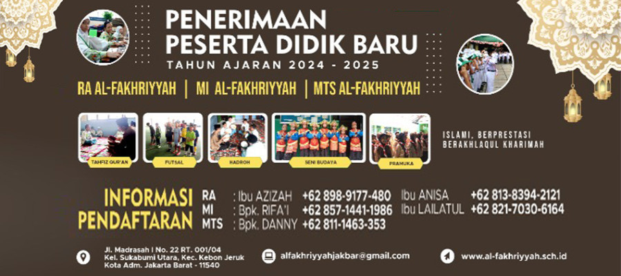 Yayasan Al-Fakhriyyah yang menaungi Raudatul Athfal (RA), Madrasah Ibtidaiyah (MI) dan Madrasah Tsanawiyah Al-Fakhriyyah secara resmi membuka penerimaan peserta didi